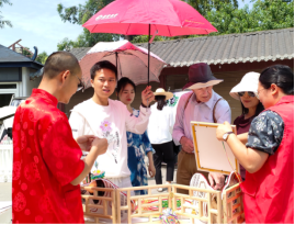 杨宗英老师和新津绳编非遗传承人杨文艺大师现场教授绳编技艺并宣传《中华人民共和国非物质文化遗产保护法》,活动吸引了周边社区居民、外地游客前来体验绳编技艺。经过三个小时的绳编非遗作品展示和编织体验活动,社区居民和游客对绳编产生了浓厚的兴趣,绳编非遗作品的展示与技法也吸引了外国友人,他们在编织体验过程中不停赞叹编织技艺的精妙。